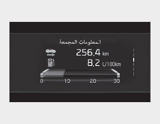 يعرض وضع كمبيوتر الرحلة معلومات تتعلق بمعلمات قيادة السيارة وتشمل المعلومات المجمعة ومعلومات القيادة وما إلى ذلك.
