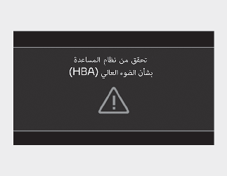 إذا لم يعمل مساعد الضوء العالي على نحو صحيح، فستظهر رسالة التحذير لثوانٍ معدودة. عندما تختفي الرسالة، سيظهر مصباح التحذير