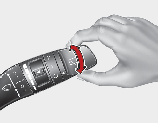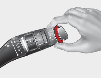 اسحب الذراع برفق تجاهك لرش سائل الغاسلة على الزجاج الأمامي ولتشغيل المساحات بمقدار يتراوح من دورة إلى ثلاث دورات. استخدم هذه الوظيفة عند اتساخ الزجاج الأمامي. وسيستمر تشغيل الرش والمسّاحة حتى تحرر الذراع.