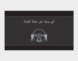 في حالة رفع السائق كلتا يديه من على عجلة القيادة لبضع ثوانٍ، ستظهر رسالة التحذير "Keep hands on the steering wheel (أبقِ اليدين على عجلة القيادة)"، وسيصدر تحذير صوتي على مراحل.
