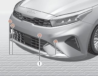 سيعمل نظام التحذير بشأن مسافة الركن للخلف/ للأمام على تحذير السائق عن طريق مؤشر التحذير أو الصوت، إذا تم اكتشاف شخص أو حيوان أو جسم في نطاق معين من خلال المستشعر فوق الصوتي الأمامي/الخلفي (1) عند تحرك السيارة للأمام أو الخلف بسرعات منخفضة.