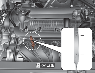 Sortez à nouveau la jauge et vérifiez le niveau. Vérifiez si le niveau d’huile se trouve entre la ligne F-L et, s’il est en dessous de la ligne L, ajoutez suffisamment d’huile pour amener le niveau à la ligne F.