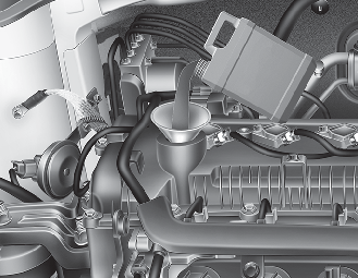 Ne touchez pas le flexible du radiateur lorsque vous vérifiez ou complétez le niveau d’huile moteur. Vous risqueriez de vous brûler.