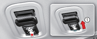 Retire a minilingueta do orifício na cobertura da cobertura do conjunto do cinto (1) e puxe lentamente o cinto de segurança para fora do retrator.