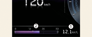 A autonomia é a distância aproximada que um veículo pode percorrer com a bateria (híbrida) de alta tensão (1, elétrica) e a quantidade de combustível no depósito (2, gasolina) remanescentes.