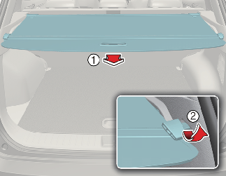 Puxe o painel de segurança da carga no sentido da traseira do veículo utilizando o manípulo (1).