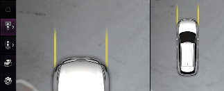 O aviso de distância de estacionamento é apresentado no lado direito do ecrã de vista superior da Monitorização de vista em volta, quando o Aviso de distância de estacionamento se encontra selecionado.