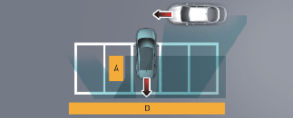 A Assistência à prevenção de colisão traseira pode detetar veículos que passam à sua frente ao estacionar em marcha-atrás num lugar de estacionamento com um muro ou estrutura na área traseira ou lateral. Neste caso, a função pode emitir o aviso de forma desnecessária e controlar o travão.