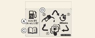 A etiqueta do combustível está fixada na tampa do depósito de combustível.
