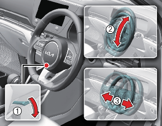 Adjust the steering wheel to the desired angle (2) and height (3).