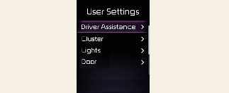 In this mode, you can change the settings of the instrument cluster, doors, lights, etc.