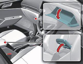Lift the armrest upward to open the centre console storage.