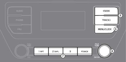 Whilst searching by turning the knob, press to select the current track/file (except for the Bluetooth audio mode).