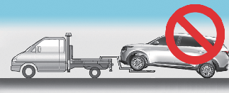 Do not tow the vehicle backwards with the front wheels on the ground as this may cause damage to the vehicle.