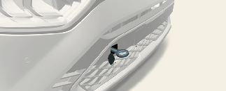 Install the towing hook by turning it clockwise into the hole until it is fully secured.