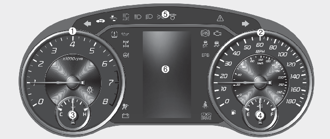 * The actual cluster in the vehicle may differ from the illustration. For more details, refer to the More Details.