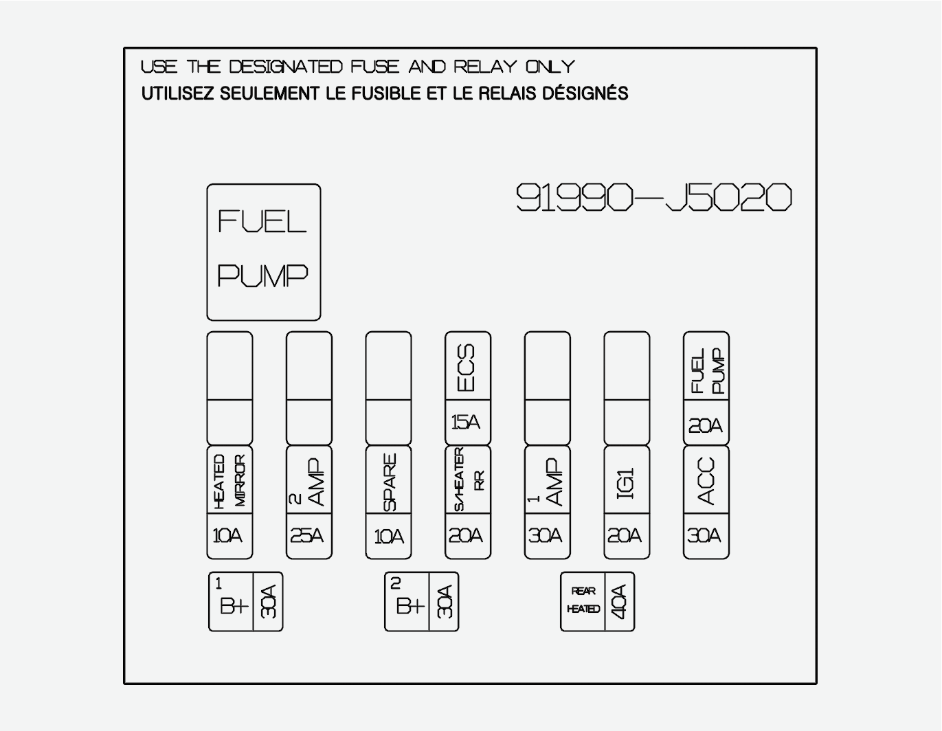 Rear Sub Junction Block (Fuse - FUEL PUMP / REAR HEATED/ AMP1) |