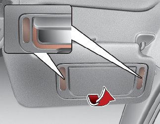 Close the vanity mirror cover securely and return the sunvisor to its original position after use. If the vanity mirror is not closed securely, the lamp will stay on and could result in battery discharge and possible sunvisor damage.