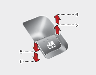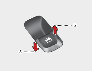 To open or close a window, press down or pull up the front portion of the corresponding switch to the first detent position (5).
