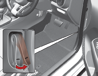 WARNINGOpen the bonnet after turning off the engine on a flat surface, shifting the shift lever to the P(Park) position for Automatic Transmission or to the N(Neutral) position for Automated Manual Transmission or to the 1st(First) gear or R(Reverse) for Manual Transmission, and setting the parking brake.