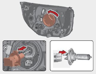2. Remove the headlamp bulb cover by turning it counterclockwise.