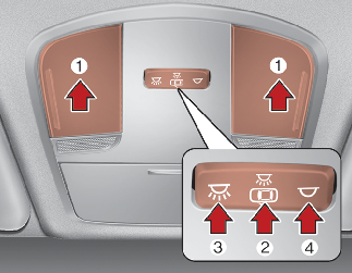 (3): Press this switch to turn the front and rear room lamps on and off.