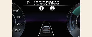 Afstanden til det forankørende køretøj på klyngen vises i henhold til den faktiske afstand mellem dit køretøj og det køretøj, der ligger foran.