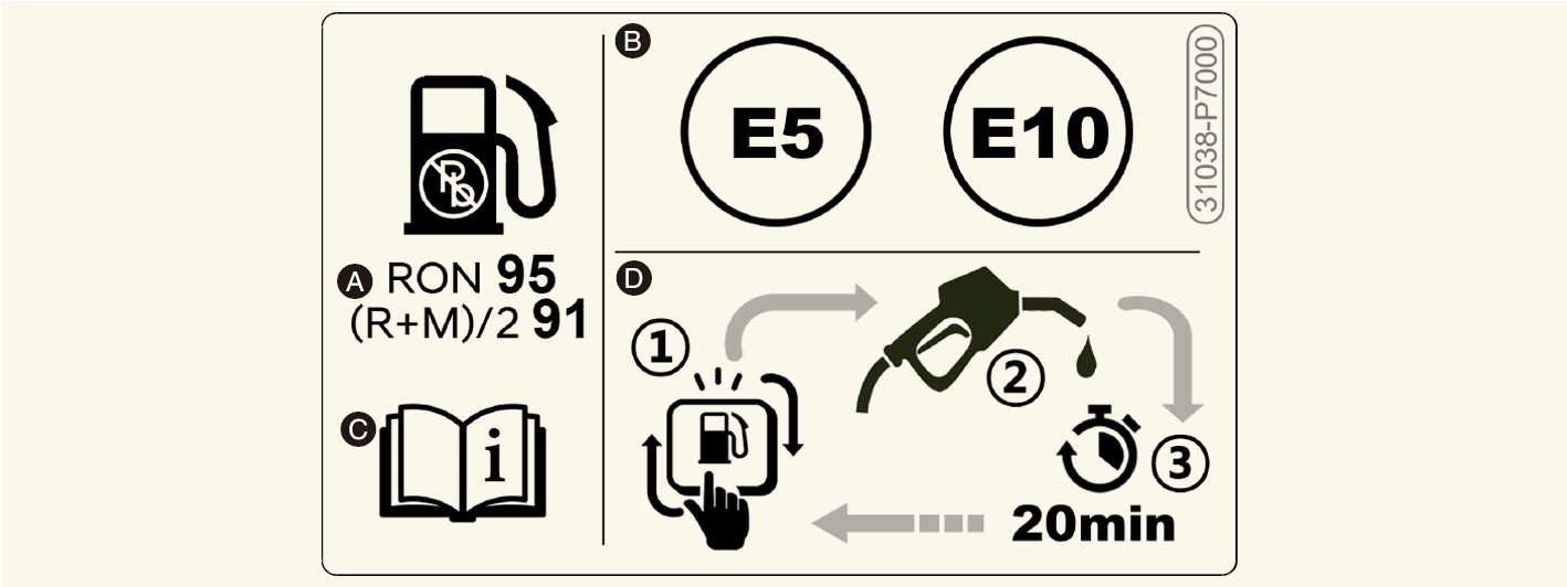 Štítok s informáciami o palive je pripevnený na dvierkach palivovej nádrže.