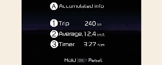 Ak chcete manuálne vynulovať informácie, stlačte a podržte tlačidlo OK na volante a zároveň zobrazte položku Accumulated Info (Zhromaždené informácie).
