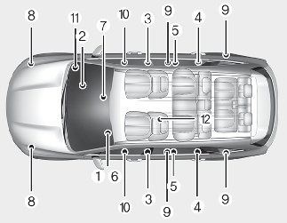 W pojazdach wyposażonych w poduszkę powietrzną pasażera nie wolno montować ani umieszczać żadnych akcesoriów (uchwytu na napoje, naklejki itp.) na przednim panelu pasażera nad schowkiem. Takie przedmioty mogą zachować się jak niebezpieczne pociski i spowodować obrażenia w przypadku zadziałania poduszki powietrznej pasażera.