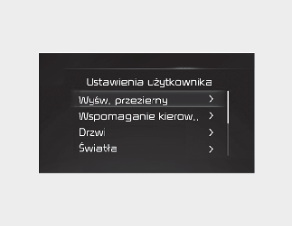 W tym trybie można zmieniać ustawienia zestawu wskaźników, drzwi, oświetlenia itp.