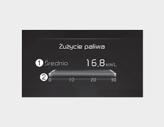 Zakres średniego spalania: 0~99,9 km/l, l/100 km lub mpg