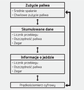 Średnie zużycie paliwa jest obliczane na podstawie całkowitej długości jazdy i zużycia paliwa od ostatniego zerowania licznika średniego spalania.