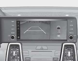Widok do tyłu podczas jazdy działa niezależnie od prędkości pojazdu przy wybranym położeniu D (jazda) lub N (bieg jałowy). Więcej informacji na temat widoku do tyłu podczas jazdy podano na następnych stronach.