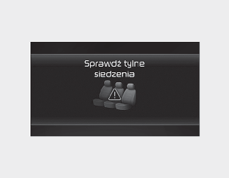 Gdy przednie drzwi zostaną otwarte po otwarciu i zamknięciu tylnych drzwi oraz wyłączeniu silnika, w zestawie wskaźników pojawi się komunikat ostrzegawczy „Check rear seats” (Sprawdź tylne siedzenia).