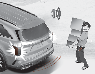Jeśli użytkownik znajduje się w obszarze wykrywania (50~100 cm za pojazdem) i ma przy sobie inteligentny kluczyk, światła awaryjne zaczną migać i będzie słychać sygnał powiadamiający o tym, że wykryto inteligentny kluczyk i tylna klapa zostanie otwarta.