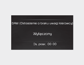 Jeśli w menu ustawień zostanie usunięte zaznaczenie opcji „Inattentive Driving Warning” (Ostrzeżenie o spadku koncentracji), pojawi się komunikat „System Off” (System wyłączony).