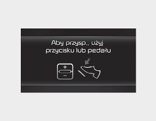 pedału, aby przyspieszyć). Wcisnąć pedał przyspieszenia lub nacisnąć przełącznik „+”, „-” lub (