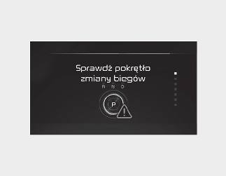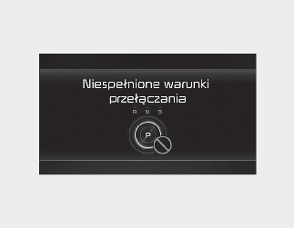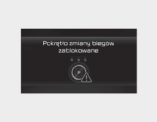 Ten komunikat pojawia się na wyświetlaczu LCD w przypadku zmiany biegu na P (parkowanie) podczas jazdy.