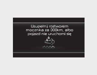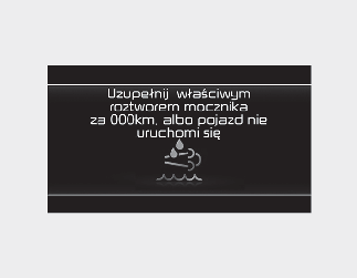 w zbiorniku jest bliska zbyt niskiego poziomu, pojawia się komunikat „Refill Urea in 000 km or vehicle will not start” (Uzupełnij