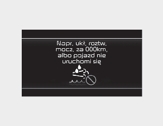 W przeciwnym razie po wyłączeniu silnika przyciskiem ENGINE START/STOP (włączenie/wyłączenie silnika) rozruch nie będzie ponownie możliwy. W zależności od stylu jazdy, warunków otoczenia i rodzaju drogi obliczony pozostały przebieg może różnić się od rzeczywistego. Po wyświetleniu komunikatu „Low Urea” (Niski poziom mocznika) lub „Refill Urea” (Uzupełnij mocznik) należy dolać odpowiednią ilość roztworu mocznika. Po wyświetleniu komunikatu „Refill Urea in 000 km or vehicle will not start” (Uzupełnij mocznik za 000 km. W przeciwnym razie rozruch pojazdu będzie niemożliwy) należy wlać odpowiednią ilość roztworu mocznika.