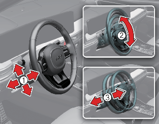 Nastavte prepínačom (1) uhol volantu (2) a polohu (3)