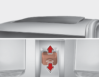 Aby w dowolnym momencie zatrzymać okno dachowe, popchnąć przełącznik okna dachowego w dowolnym kierunku.