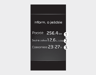 W przypadku otwarcia drzwi kierowcy po wyłączeniu silnika lub po upływie 3 minut od jego ponownego uruchomienia, informacje o jeździe zostaną wyzerowane.