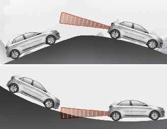 Systemet för säkerhet i döda vinkeln fungerar eventuellt inte korrekt vid körning i en sluttning. Funktionen upptäcker eventuellt inte fordonet i körfältet intill eller tolkar av misstag marken eller en konstruktion som ett fordon.