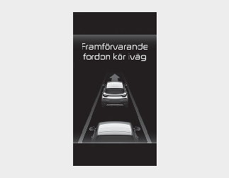 Leading Vehicle Departure Alert (startvarning för framförvarande fordon) informerar föraren när framförvarande fordon börjar köra. Systemet visar meddelandet “Leading vehicle is driving away” (framförvarande fordon börjar köra) samtidigt som en hörbar varning låter.