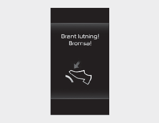 Det här varningsmeddelandet visas när fordonet körs långsamt i en lutning och fordonet detekterar att bromspedalen inte används.
