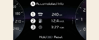 To manually reset the information, press and hold the OK button on the steering wheel when viewing the Accumulated Info.