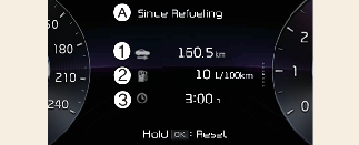 To manually reset the information, press and hold the OK button on the steering wheel when viewing the Since refueling.