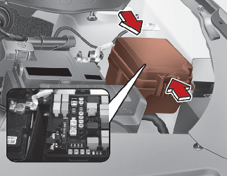 After checking the fuse panel in the engine compartment, securely install the fuse panel cover through the audible clicking sound.